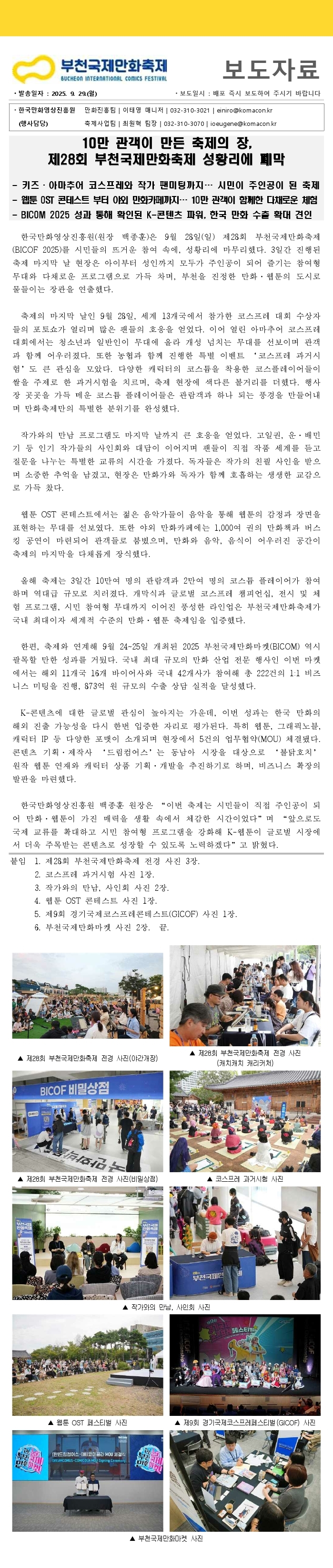 [부천국제만화축제]시민이 주인공! 제28회 부천국제만화축제, 3일차 뜨거운 참여 속 대미 장식