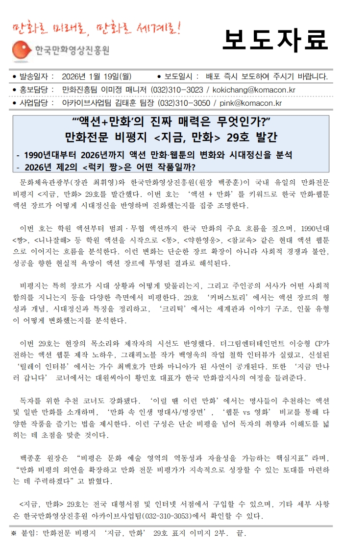 만화전문 비평지 〈지금, 만화〉29호 발간