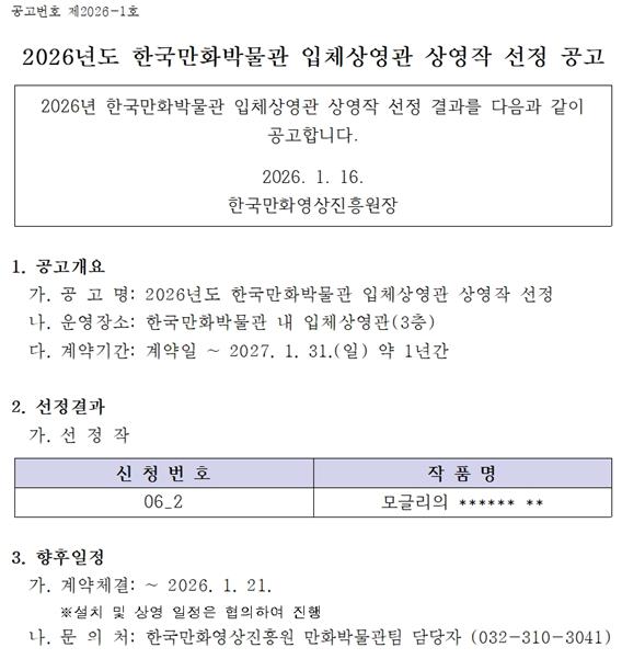 2026년도 한국만화박물관 입체상영관 상영작 선정 공고