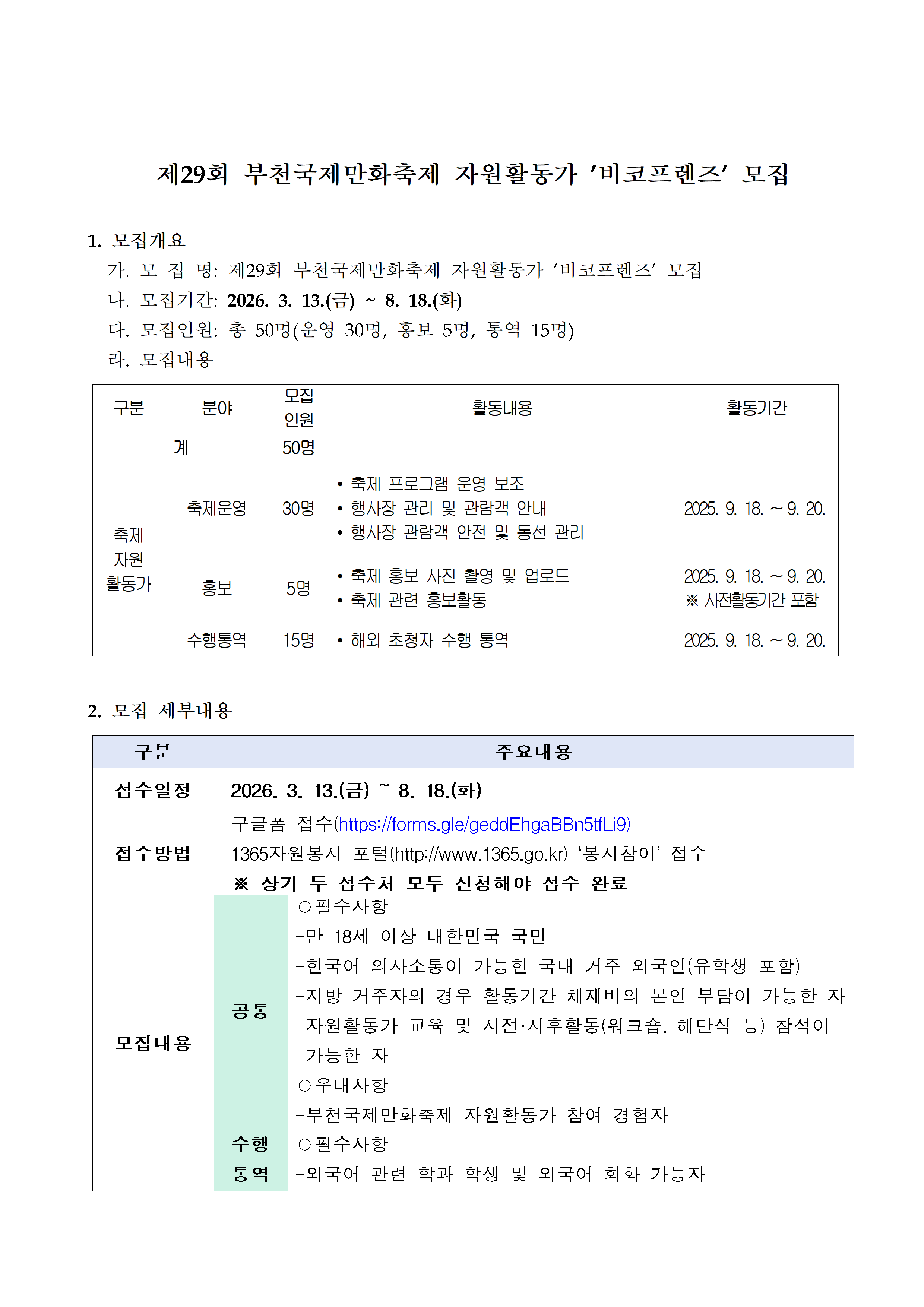 제29회 부천국제만화축제 자원활동가 '비코프렌즈'를 모집합니다!