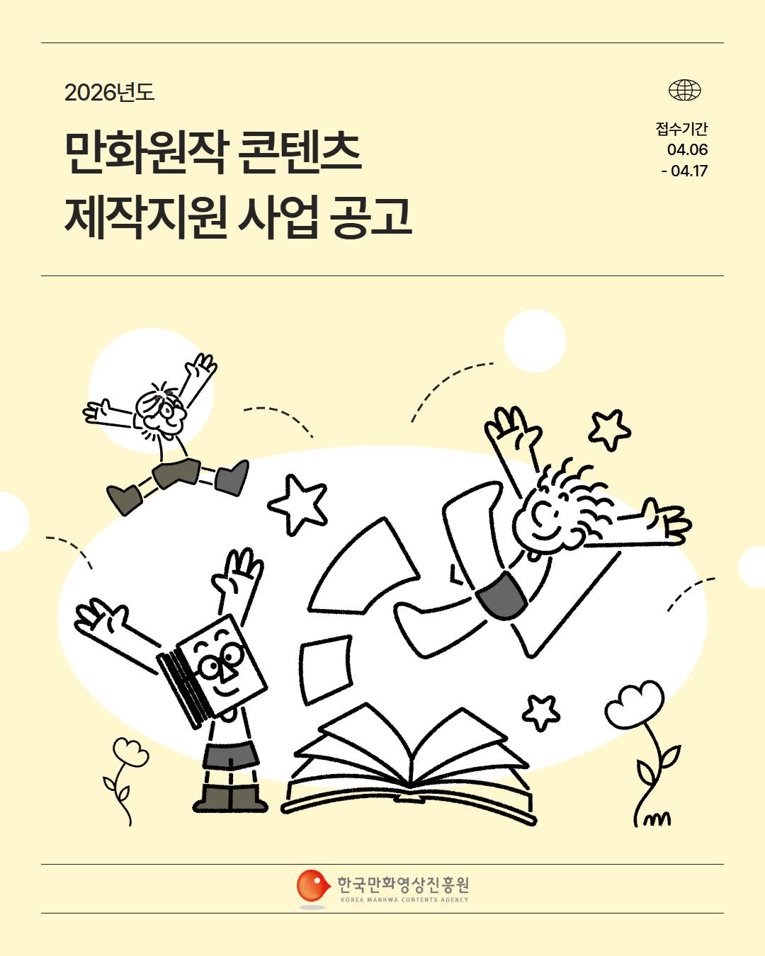 2026년 다양성만화 제작지원 사업 접수 시작! 당신의 세계관, 목소리, 실험… 한국 만화의 다양성으로 보여주세요 ✨