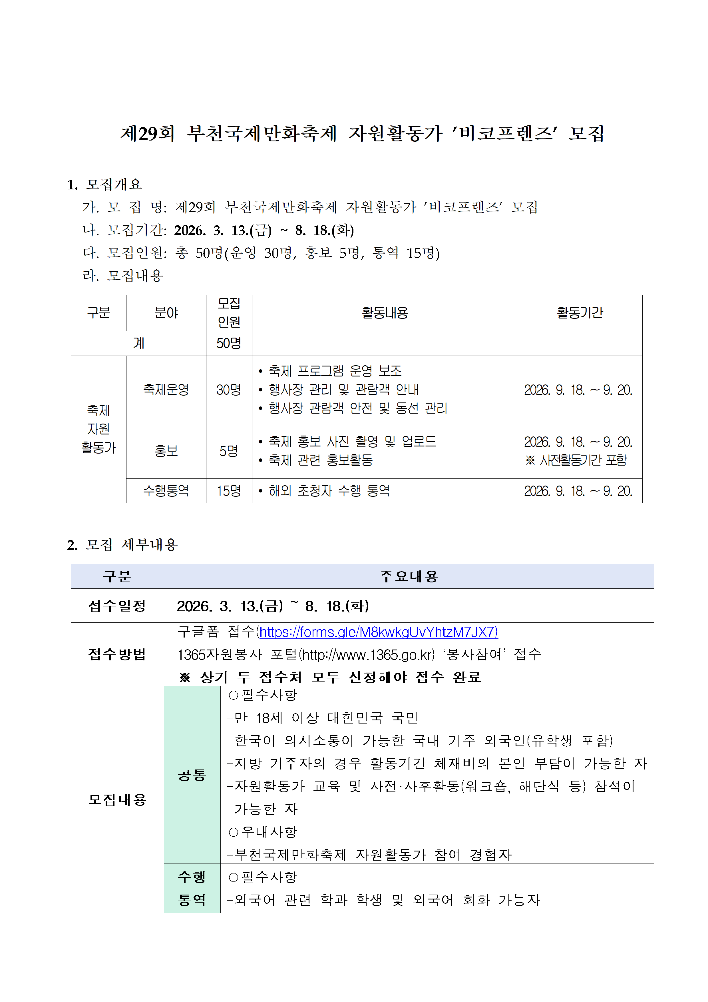 제29회 부천국제만화축제 자원활동가 '비코프렌즈'를 모집합니다!