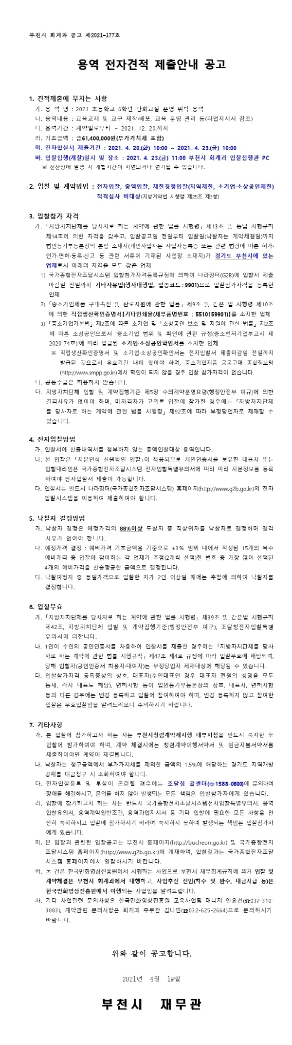 2021 초등학교 6학년 만화교실 운영 위탁 용역 전자견적 제출안내 공고