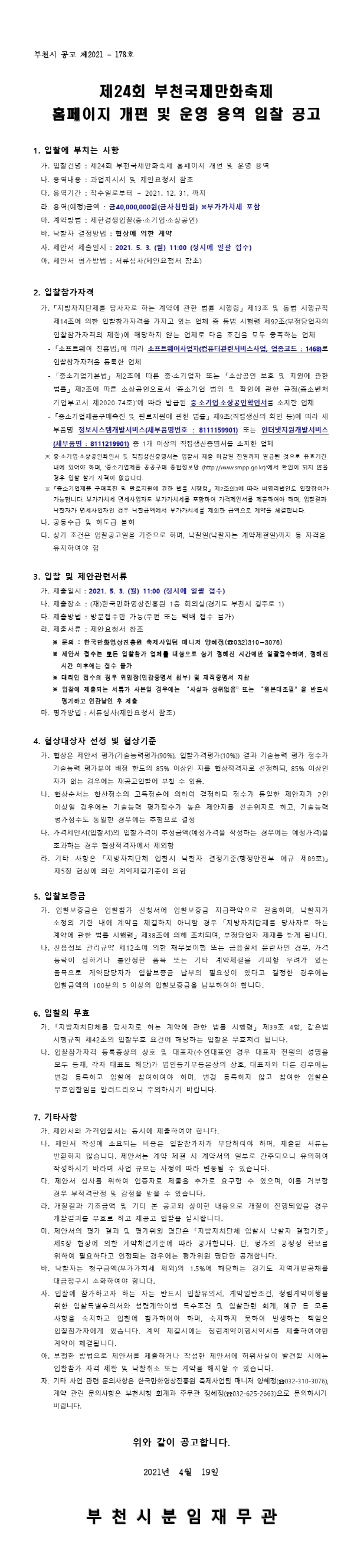 제24회 부천국제만화축제 홈페이지 개편 및 운영 용역 입찰 공고