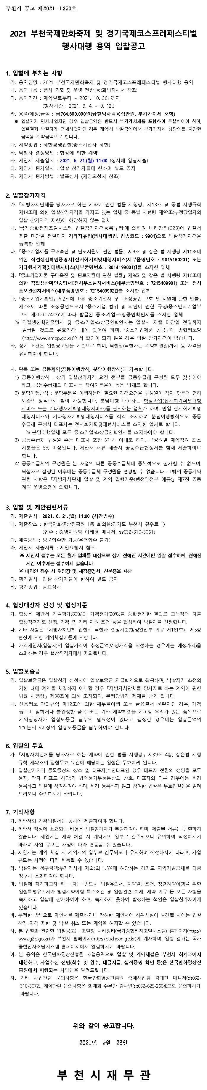 2021 부천국제만화축제 및 경기국제코스프레페스티벌 행사대행 용역 입찰공고