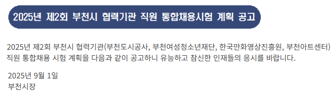 2025년 제2회 부천시 협력기관 직원 통합채용시험 계획 공고