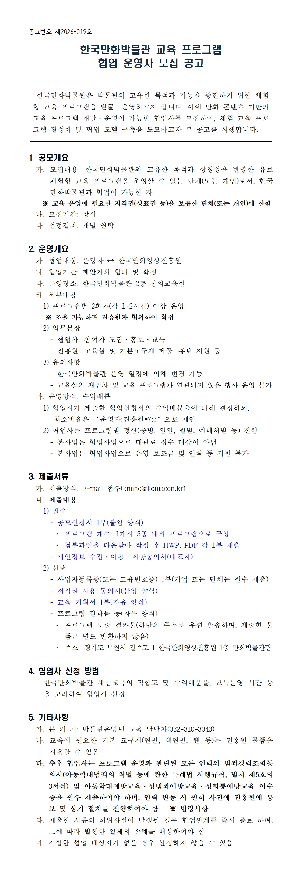 한국만화박물관 교육 프로그램 협업 운영자 모집(상시)_공고문.hwp