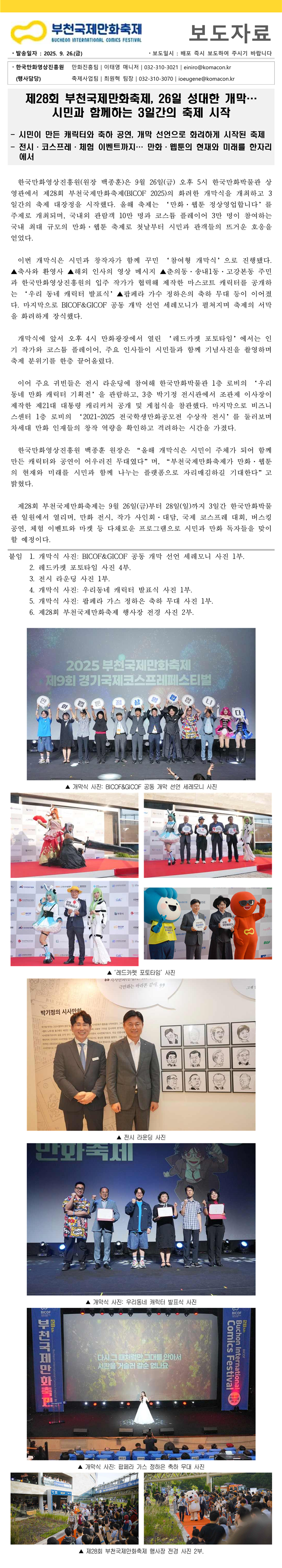 [부천국제만화축제]제28회 부천국제만화축제, 성대한 개막… 시민과 함께하는 3일간의 축제 시작