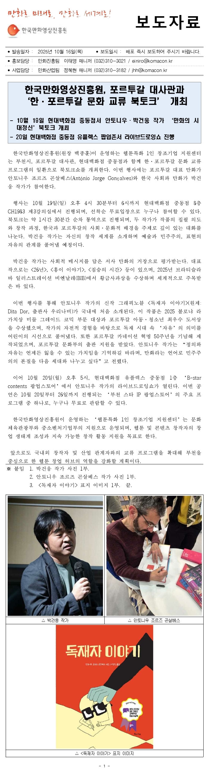 한국만화영상진흥원, 포르투갈 대사관과 ‘한·포르투갈 문화 교류 북토크’ 개최