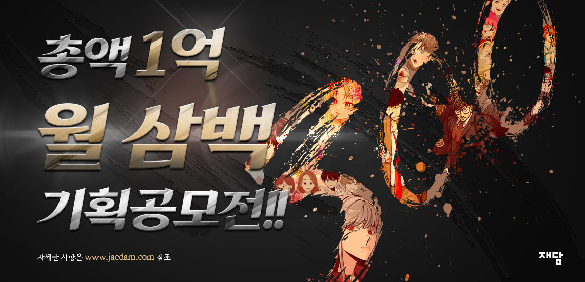 [재담미디어] 총액 1억원 웹툰공모전:재담 보증, 월삼백 기획공모전