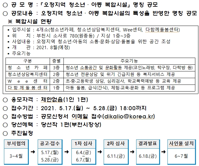 [부천시]오정지역 청소년·아동 복합시설 명칭 공모 참여 및 홍보
