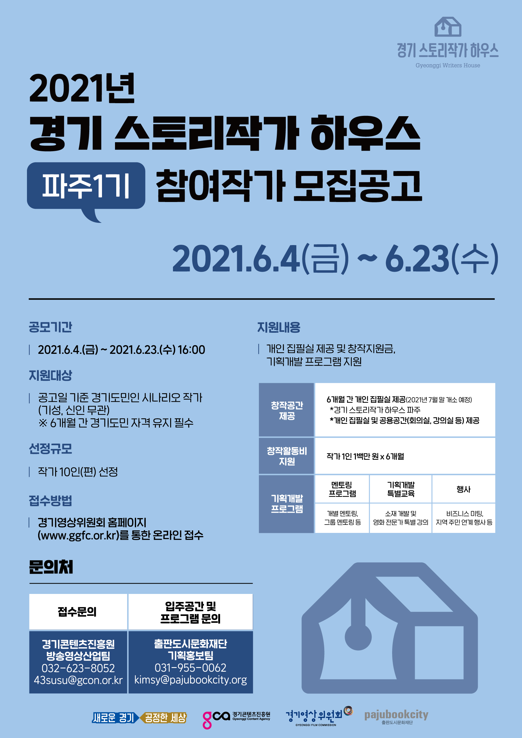 [경기콘텐츠진흥원] 경기 스토리작가 하우스 파주 1기 작가 모집공고
