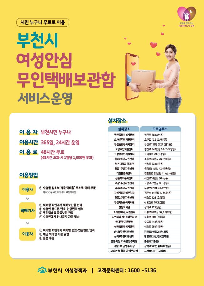 [부천시] 여성안심 무인택배보관함 서비스 실시