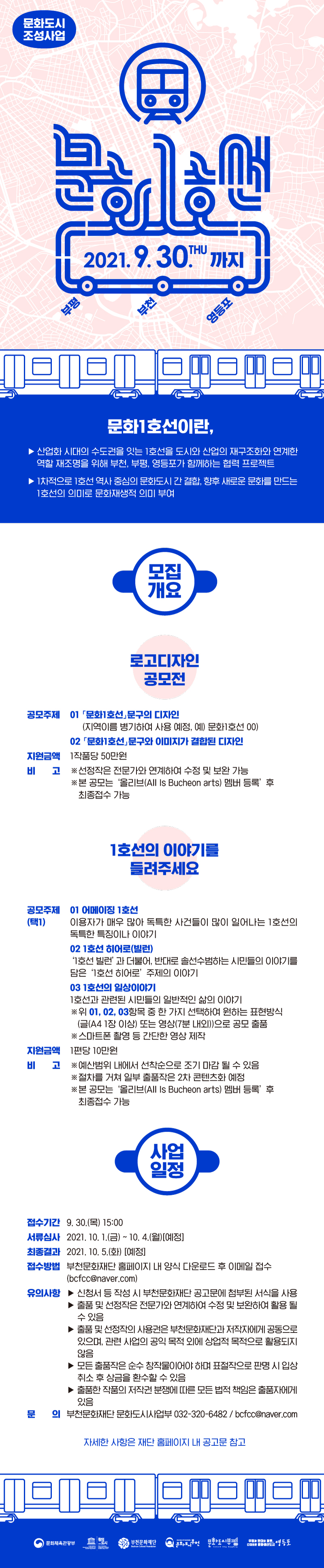 [부천문화재단] 문화도시 조성사업 문화1호선 로고 디자인 등 공모 참여자 모집 홍보