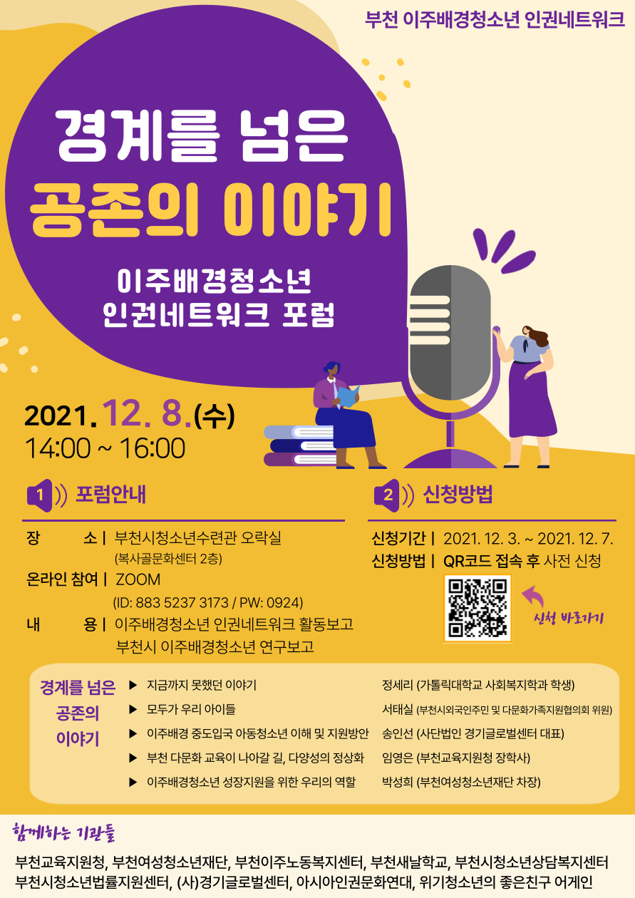 [부천여성청소년재단] 부천 이주배경청소년 인권네트워크 포럼 "경계를 넘은 공존의 이야기" 홍보