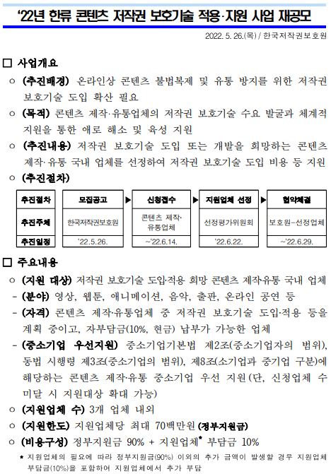 [한국저작권보호원] 2022년 한류 콘텐츠 저작권 보호기술 적용지원 사업 홍보