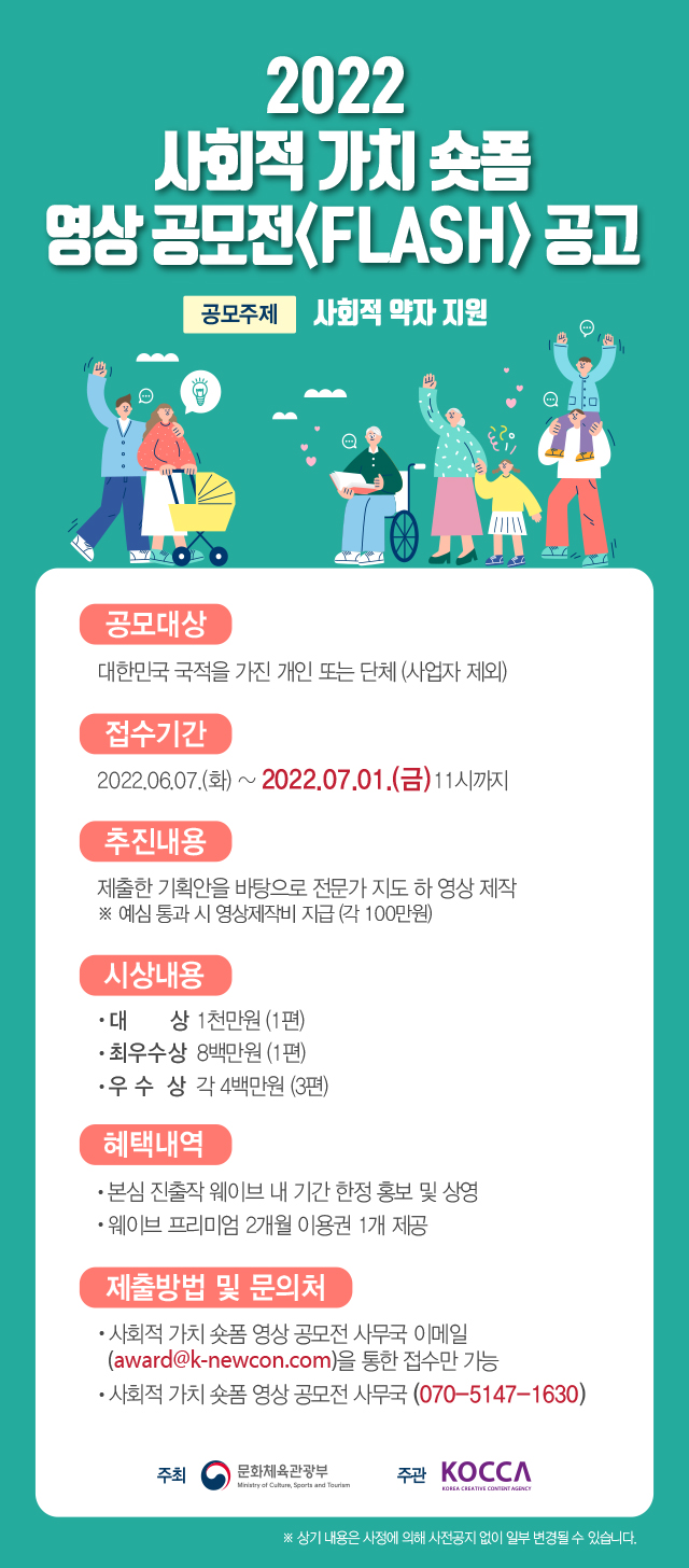 [한국콘텐츠진흥원] 2022 사회적 가치 숏폼 영상 공모전 공모개요