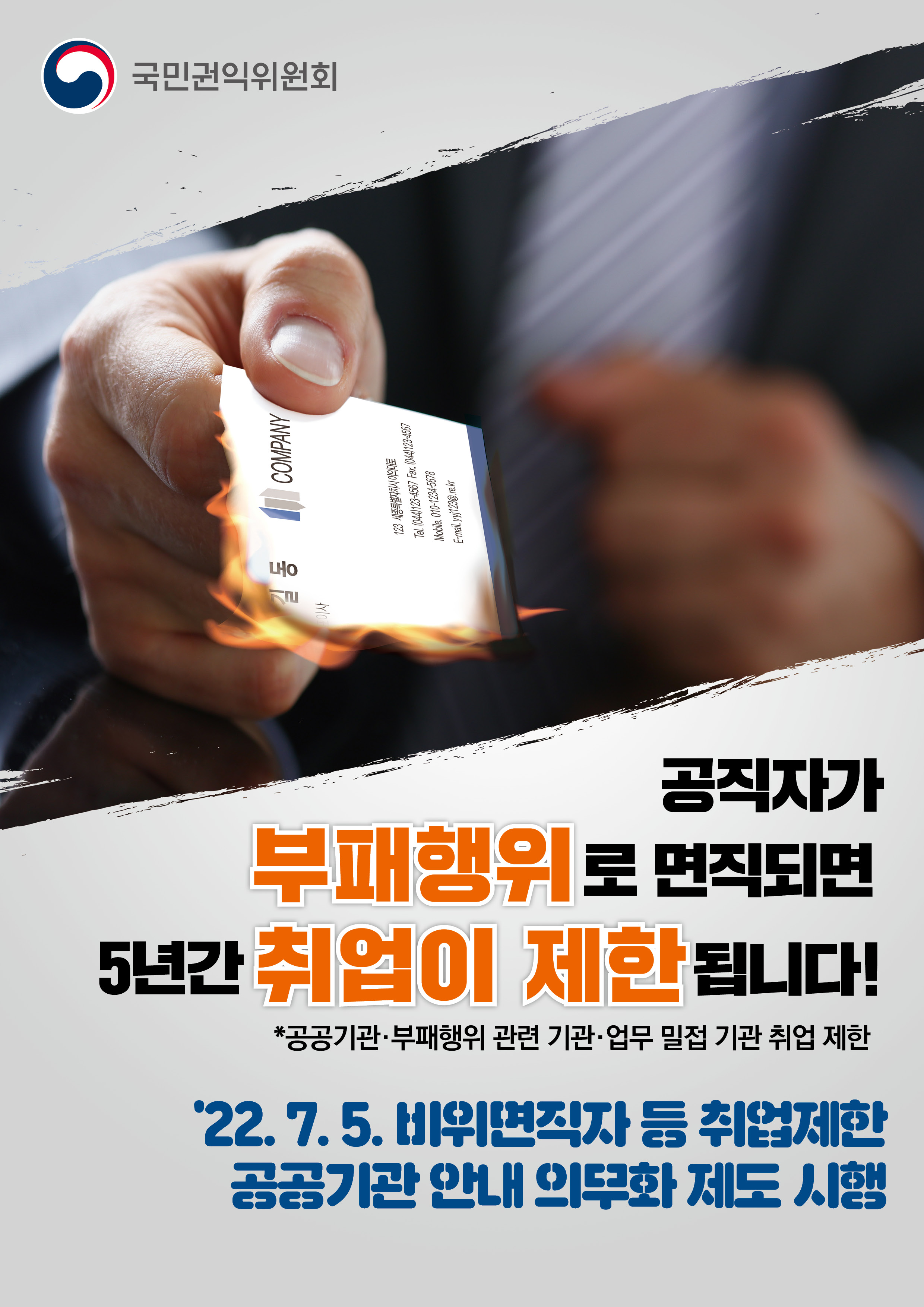 [국민권익위원회] 비위면직자등 취업제한 공공기관 안내 의무화 제도