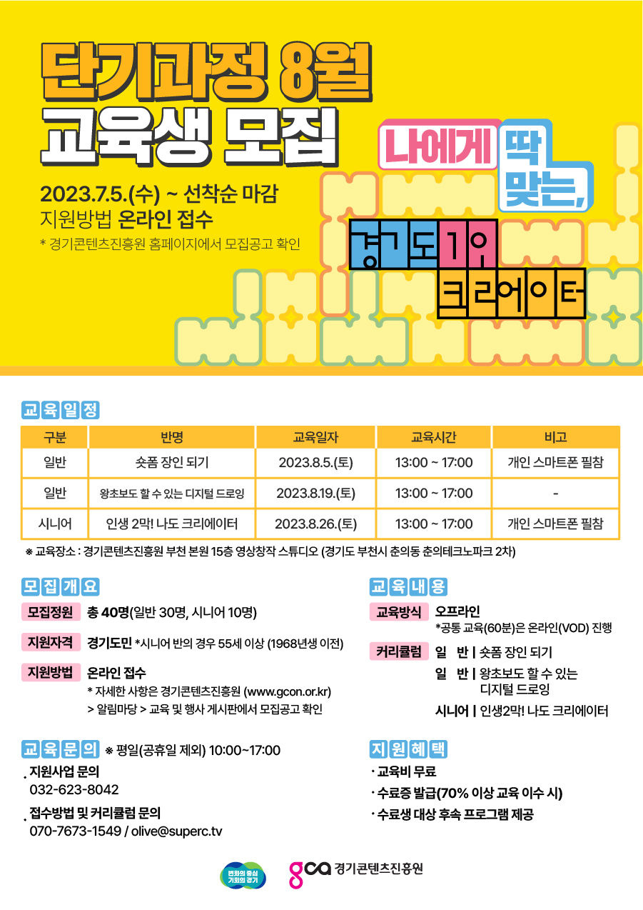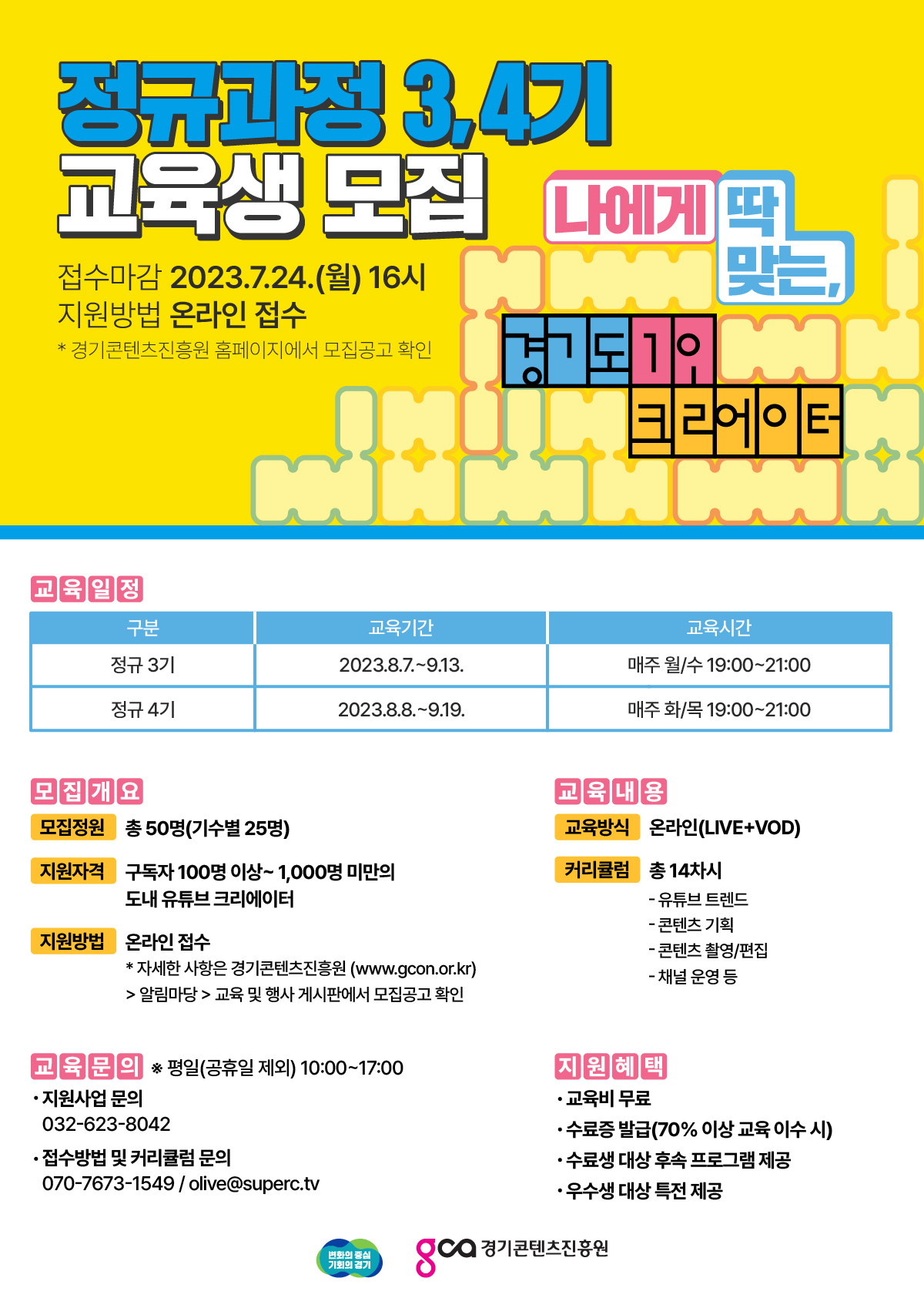 [경기콘텐츠진흥원] 2023 경기도 1인 크리에이터 교육지원 모집공고