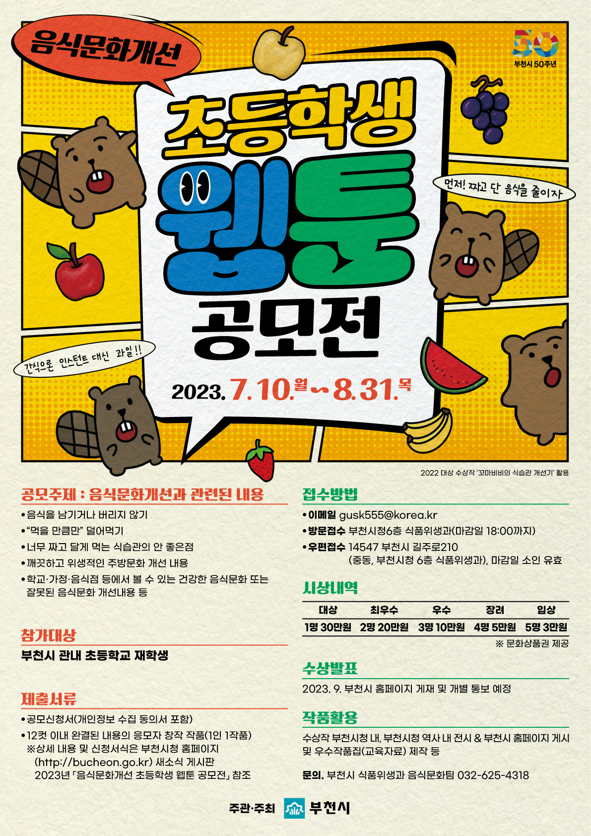 [부천시] 음식문화개선 초등학생 웹툰 공모전 홍보
