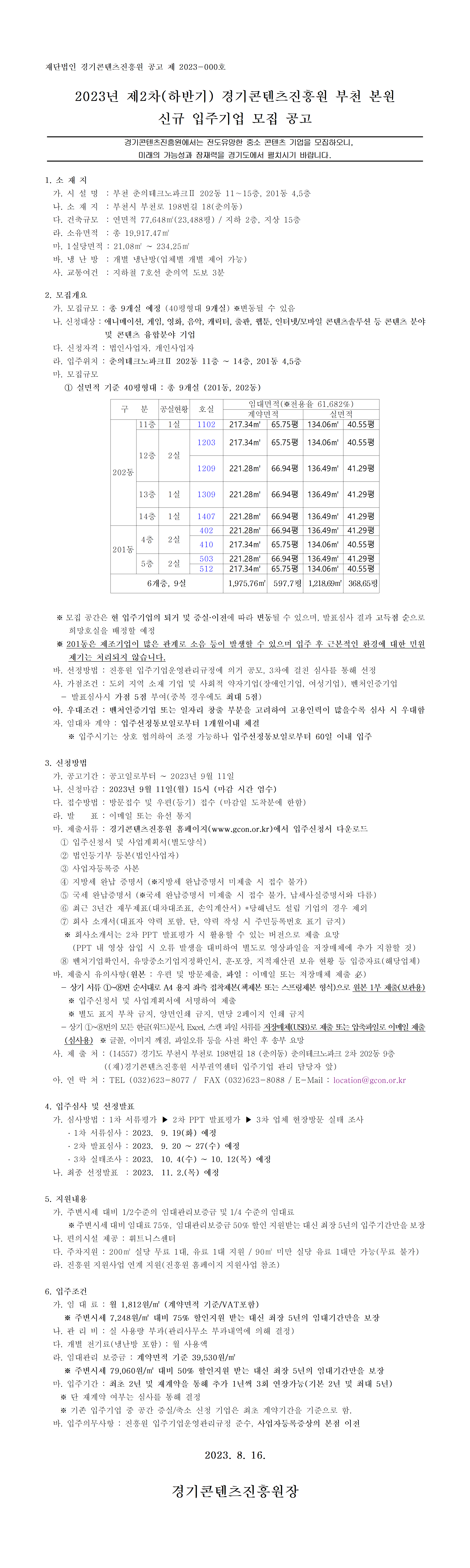 [경기콘텐츠진흥원] 2023년 제2차(하반기) 경기콘텐츠진흥원 부천 본원 신규 입주기업 모집 공고