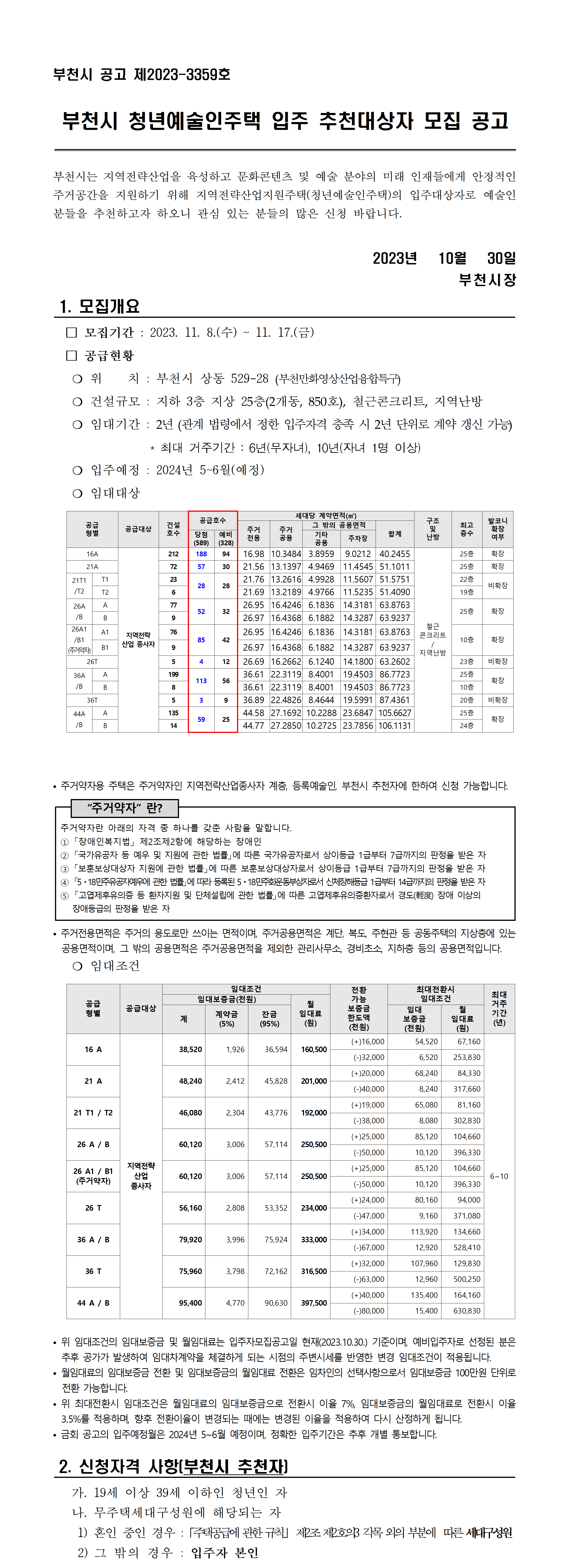 [공고문] 부천시 청년예술인주택 입주 추천대상자 모집 공고.hwp