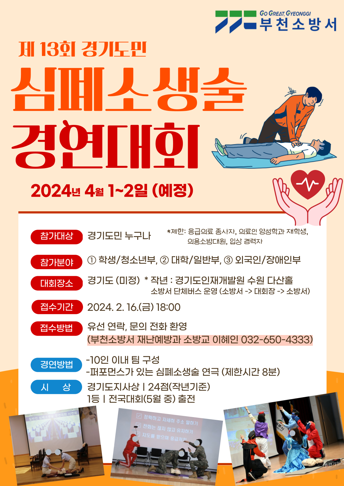 [부천소방서] 제13회 경기도민 심폐소생술 경연대회 참가자 모집 (~2.16.)
