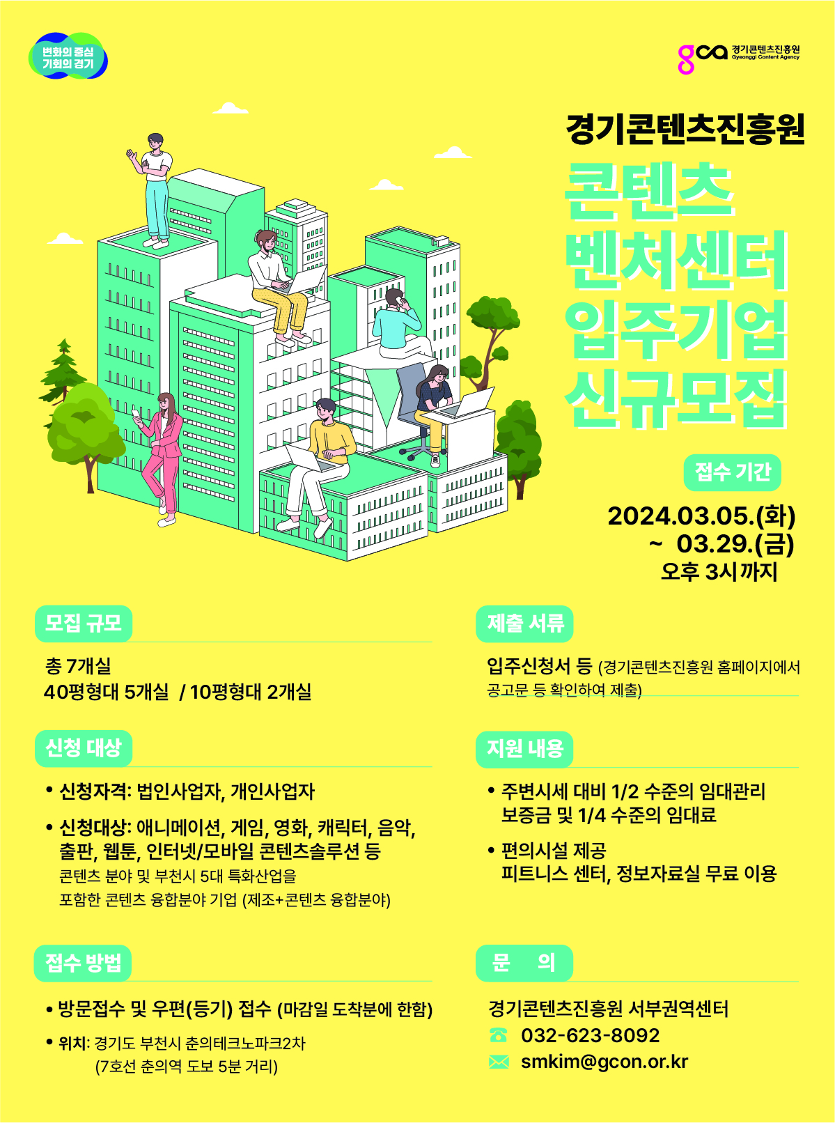[경기콘텐츠진흥원] 콘텐츠벤처센터 입주기업 신규 모집
