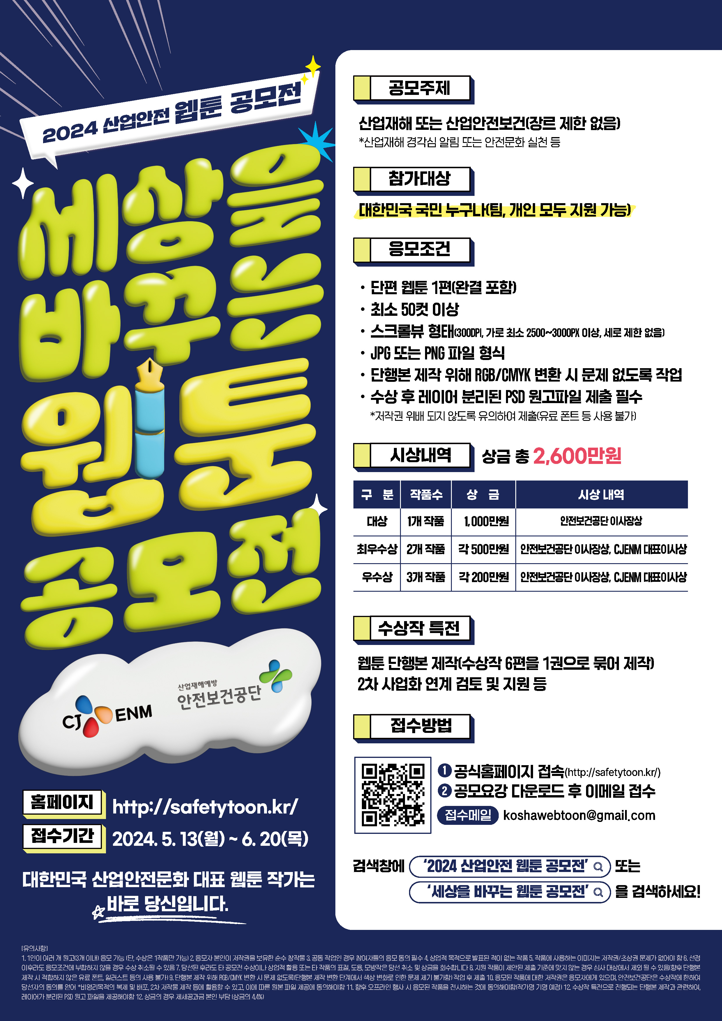 [한국산업안전보건공단] 2024 산업안전 웹툰 공모전 개최(~6. 20.)