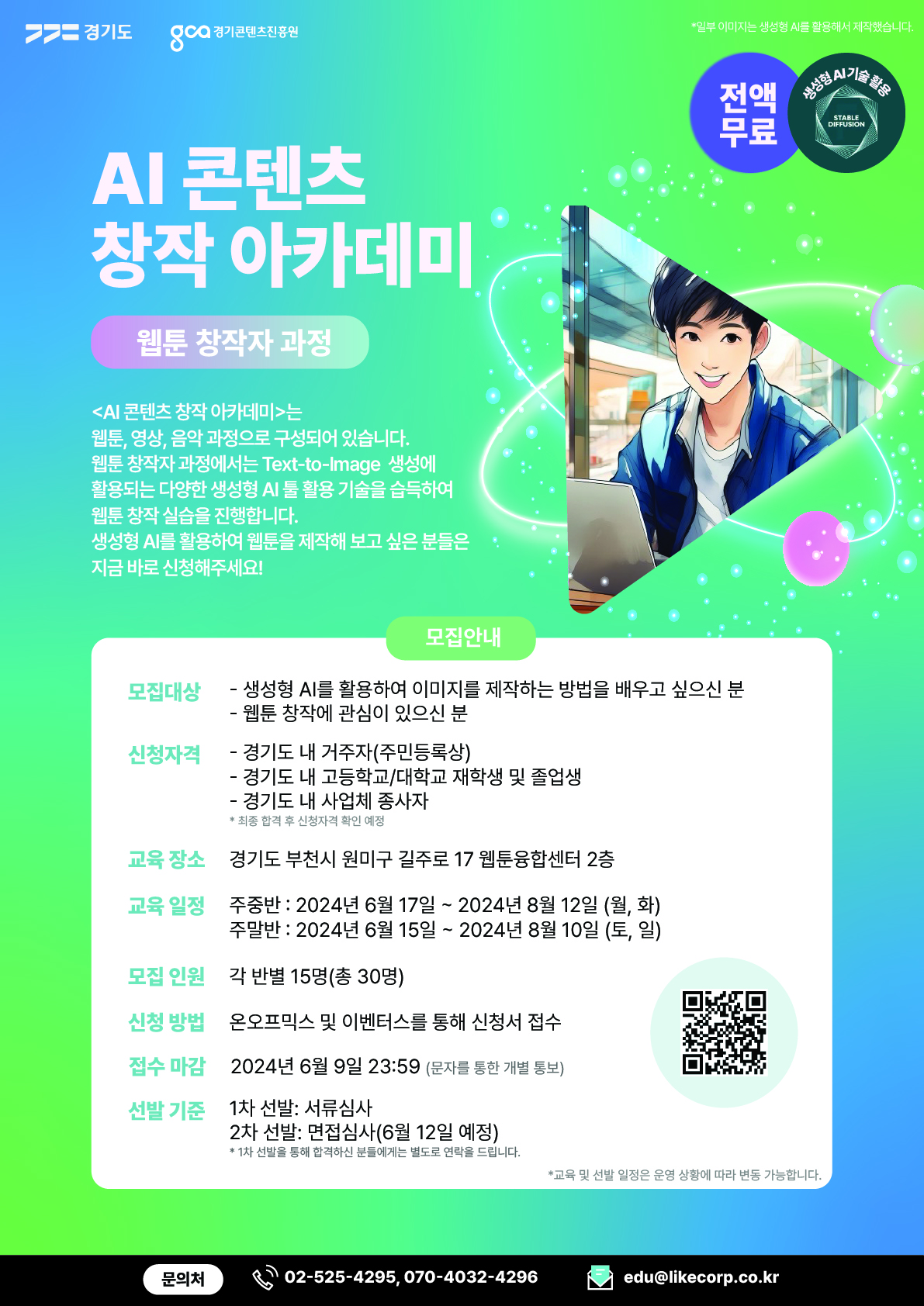 [경기콘텐츠진흥원] AI 콘텐츠 창작 아카데미 - 웹툰 창작자 과정 수강생 모집(~6. 9.)