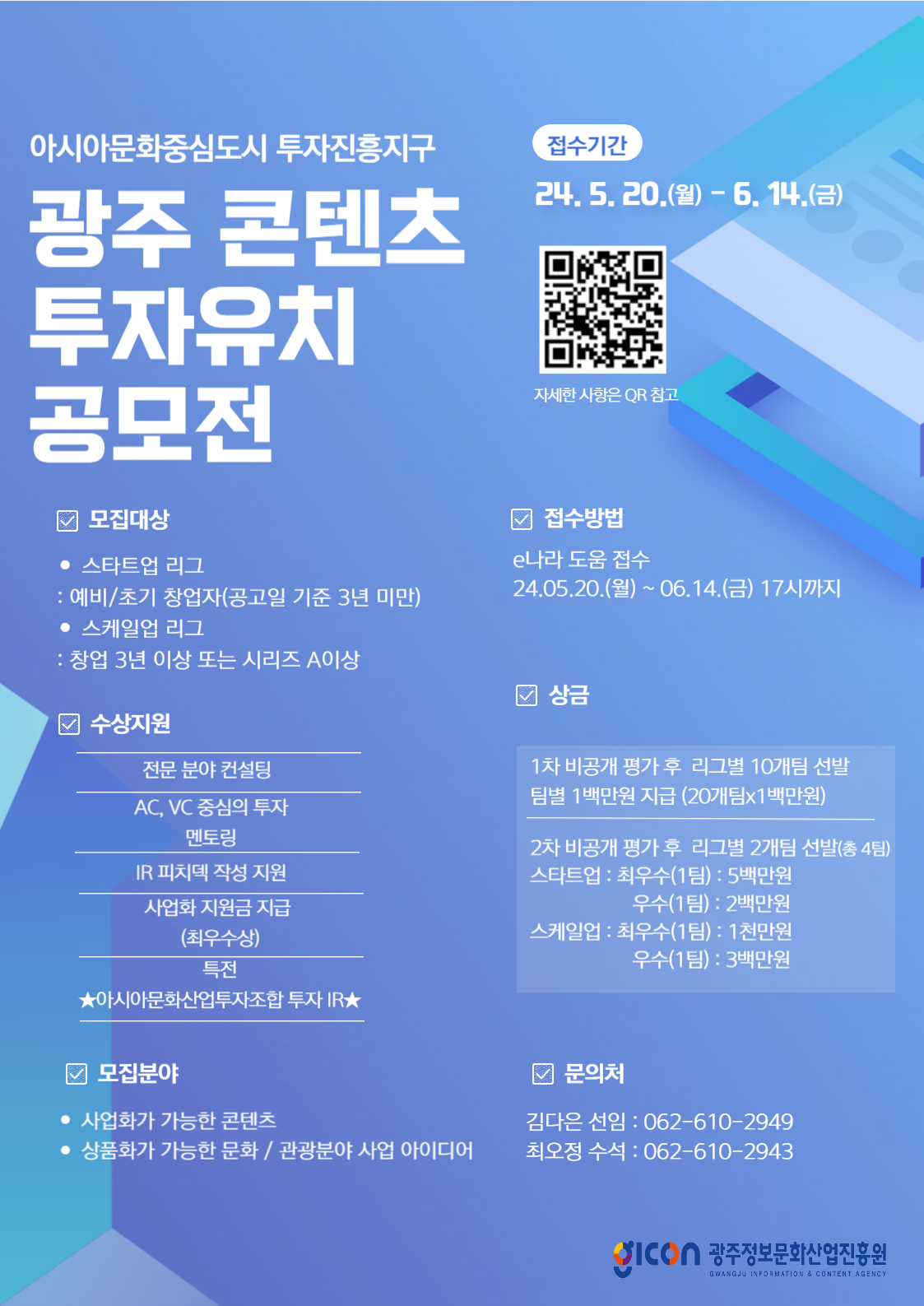 [광주정보문화산업진흥원] 2024 광주 콘텐츠 투자유치 공모전(~6.14.)