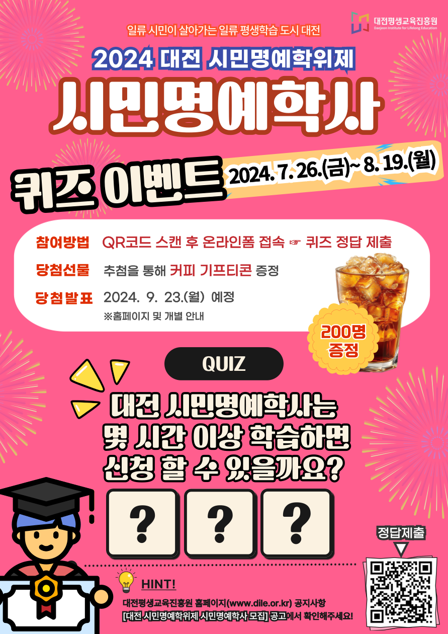 [대전평생교육진흥원] 2024 대전 시민명예학위제 시민명예학사 퀴즈 이벤트(~8.19.)