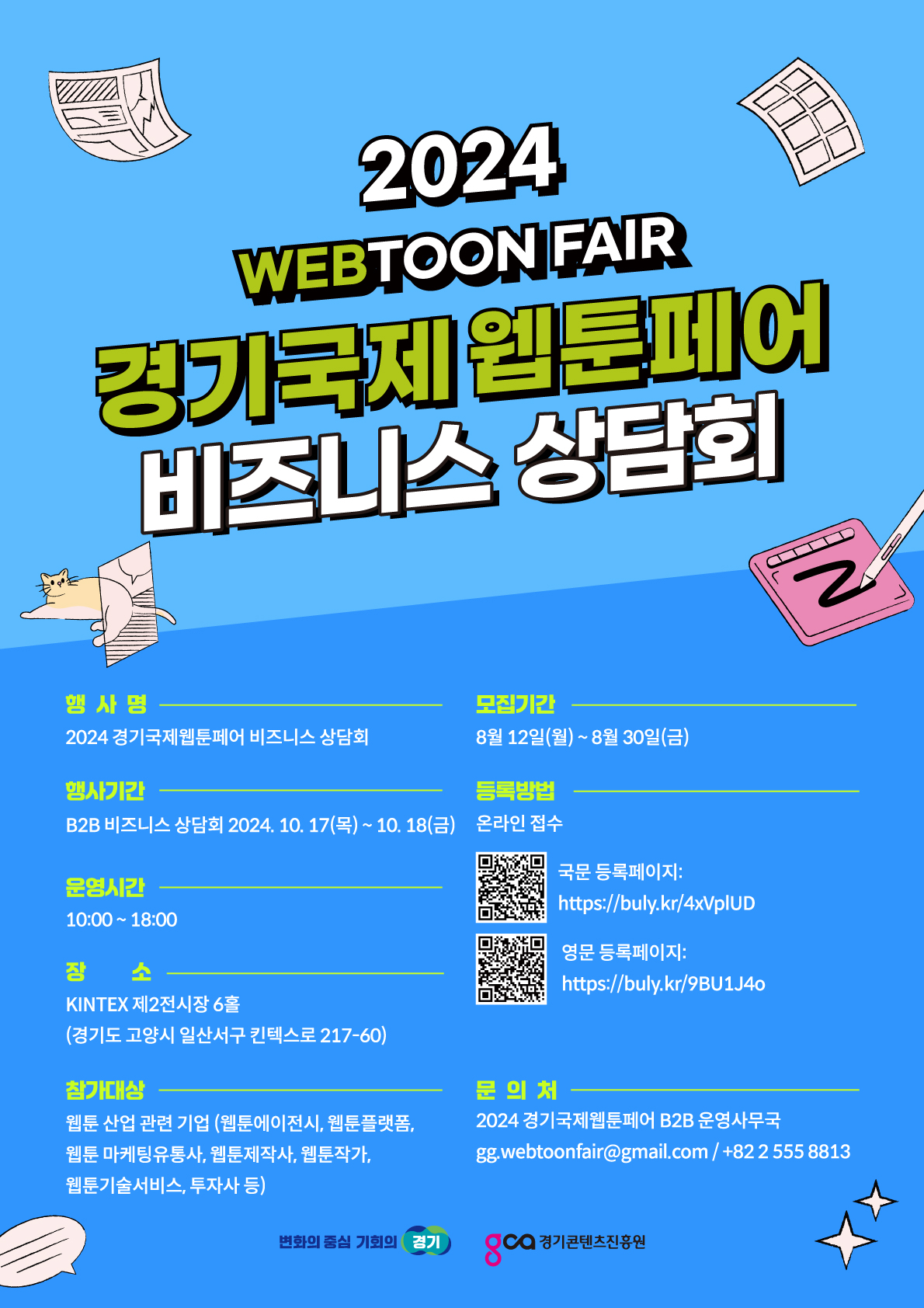 [경기콘텐츠진흥원] 2024 경기국제웹툰페어 비즈니스 상담회 참가자 모집(~8.30.)