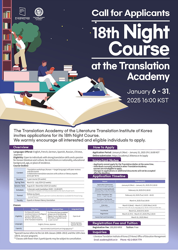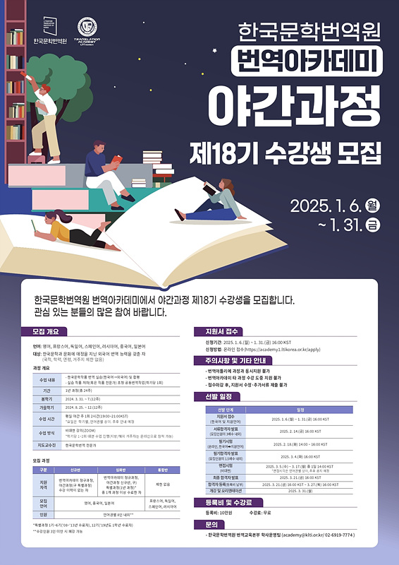 [한국문학번역원] 번역아카데미 야간과정 제18기 수강생 모집