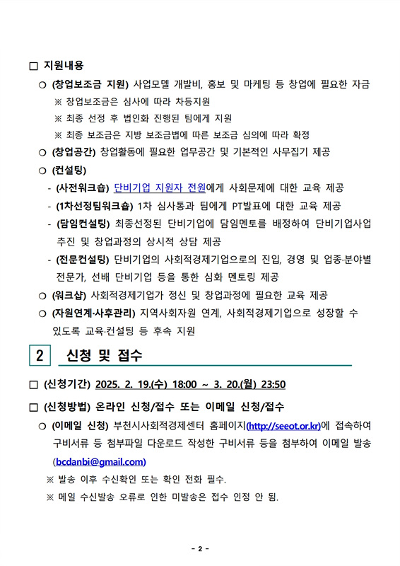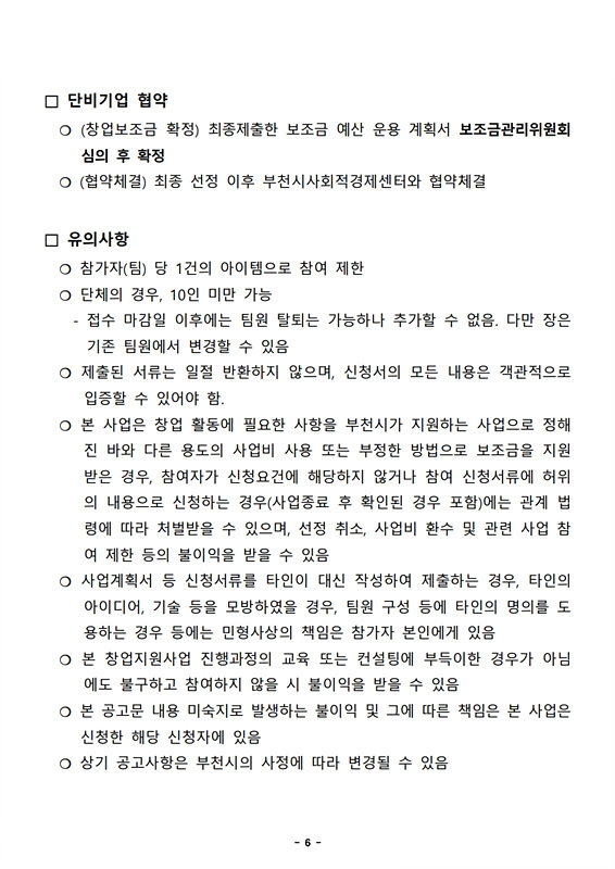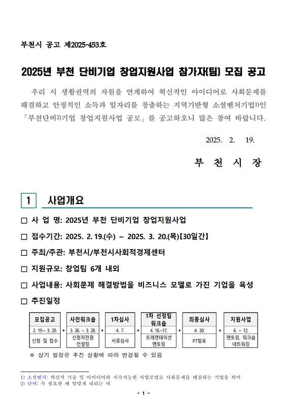 [부천시] 부천단비기업 창업지원사업 참가자(팀) 모집