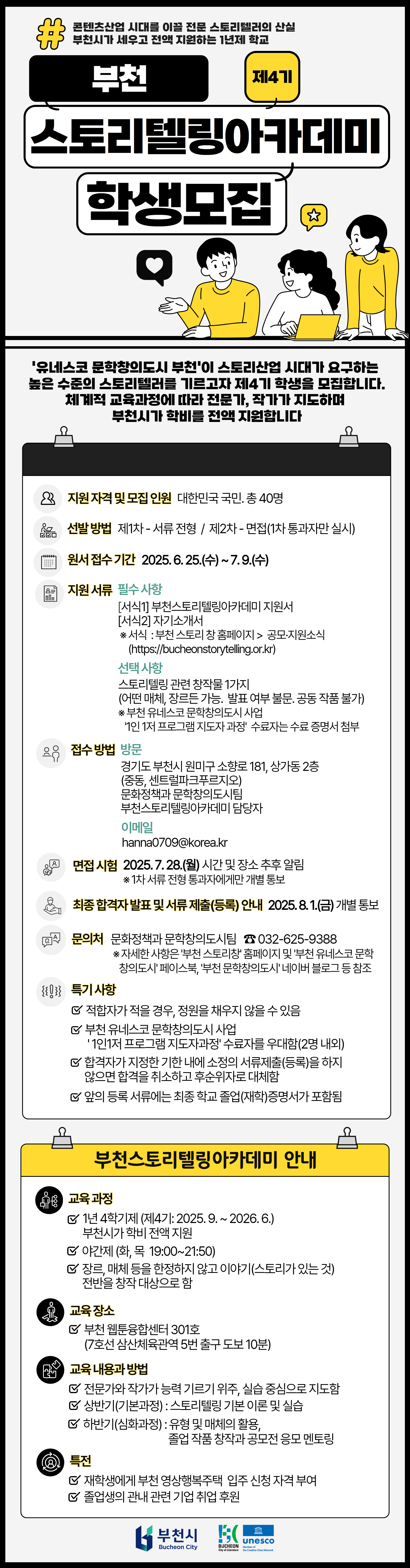 「제4기 부천스토리텔링아카데미」학생 모집 홍보