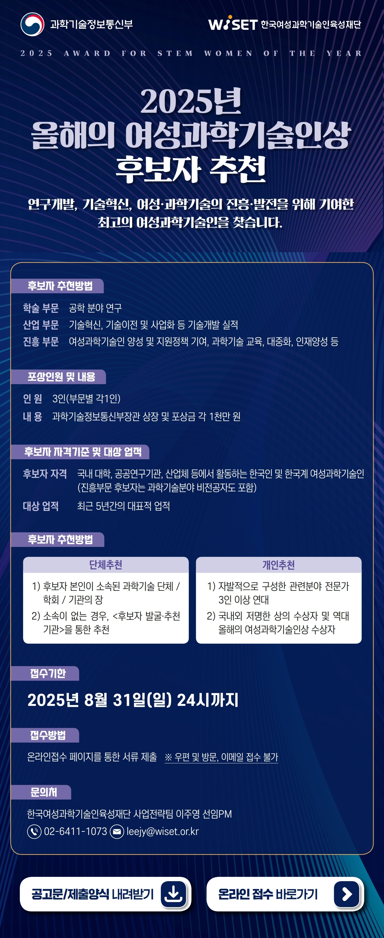 (과학기술정보통신부 공고 제2025-0771호) 2025년 제25회 올해의 여성과학기술인상 선정계획 공고.hwpx