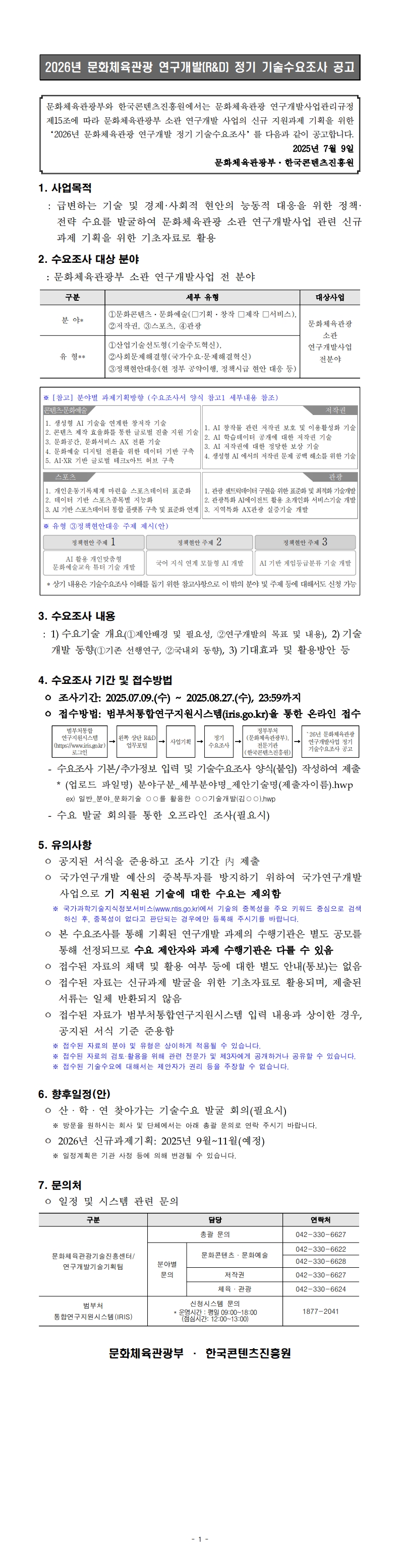 1. 2026년 문화체육관광 연구개발사업 기술수요조사 공고문.hwp