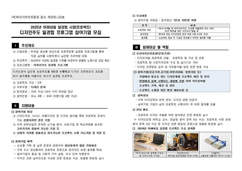 [부산디자인진흥원] 2025 청년일경험 지원사업(프로젝트) 디자인주도 일경험 프로그램 참여기업 모집