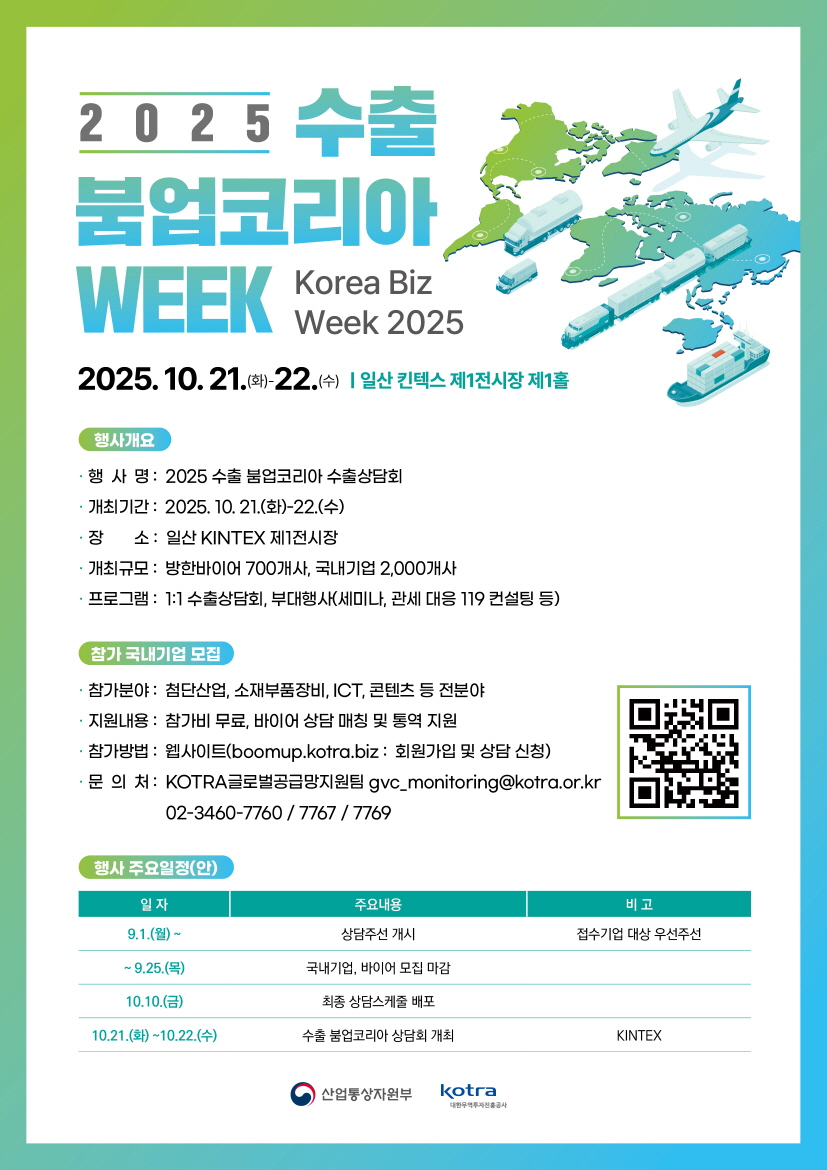 [KOTRA] 2025 수출 붐업코리아 WEEK 참가기업 모집
