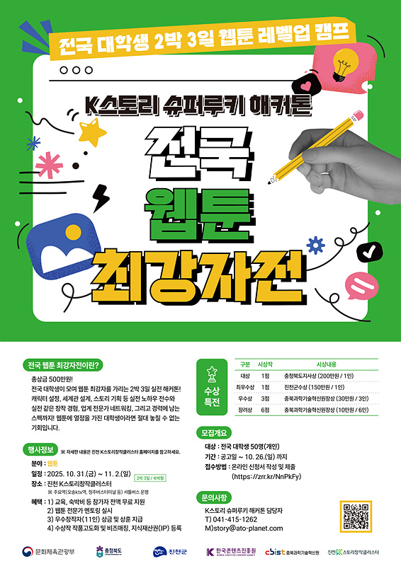 [충북과학기술혁신원] 진천 K스토리창작클러스터 슈퍼루키해커톤전국 대학생 웹툰 최강자전 모집