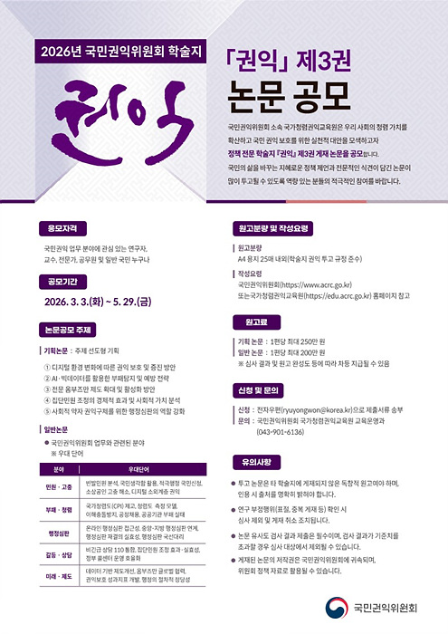 [국가청렴권익교육원] 2026년 학술지 권익 논문 공모